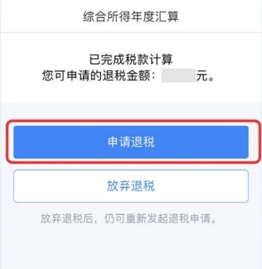 (六)申報成功后,如果需要退稅,則跳轉(zhuǎn)到退稅頁面,點擊“申請退稅”。