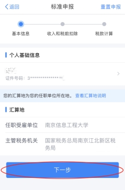 (三)確認“個人基礎(chǔ)信息”、“任職受雇單位”,確認無誤點擊“下一步”。