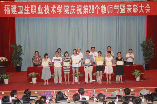 下午,慶祝第28個(gè)教師節(jié)表彰大會(huì)召開(kāi),由廖偉堅(jiān)副院長(zhǎng)主持,陳雄副書記宣讀了學(xué)院黨委《福建衛(wèi)生職業(yè)技術(shù)學(xué)院關(guān)于表彰第二屆師德標(biāo)兵的決定》、《關(guān)于頒發(fā)長(zhǎng)期從事教育工作的教師與教育工作者榮譽(yù)證書的通知》以及《受院級(jí)以上表彰的先進(jìn)集體與個(gè)人名單》,李紅副院長(zhǎng)宣讀了《福建衛(wèi)生職業(yè)技術(shù)學(xué)院關(guān)于表彰2012年青年教師教學(xué)競(jìng)賽獲獎(jiǎng)集體與個(gè)人的決定》,院領(lǐng)導(dǎo)為獲得榮譽(yù)和表彰的集體和個(gè)人代表頒發(fā)了榮譽(yù)證書。