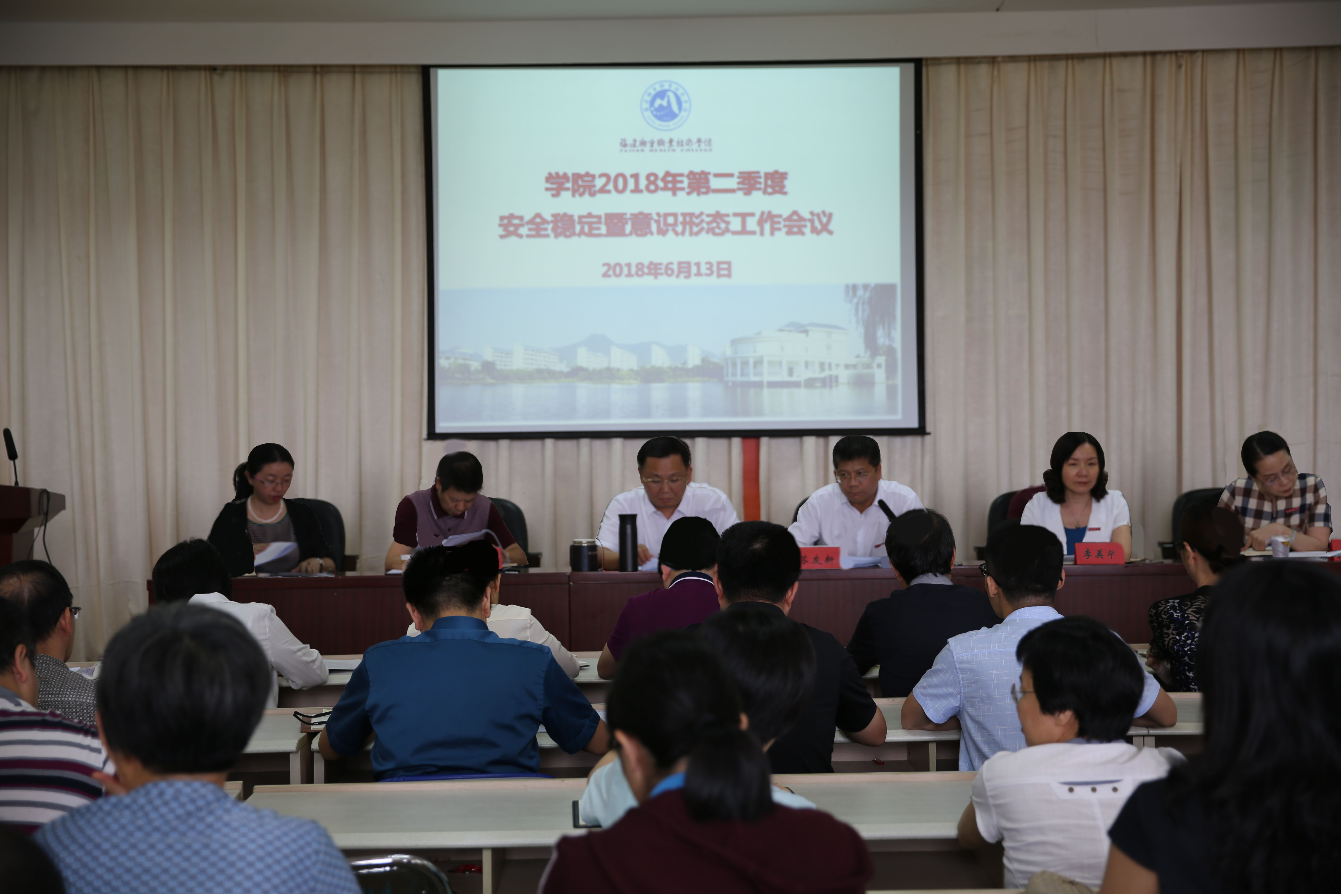 會上,黨委工作部通報了學(xué)院2018年第二季度意識形態(tài)工作及存在問題,并提出下一階段意識形態(tài)工作思路:一是加強培訓(xùn)提升隊伍專業(yè)化素質(zhì),二是抓實抓緊抓好常規(guī)工作,三是拓展意識形態(tài)網(wǎng)絡(luò)隱性教育平臺。保衛(wèi)處通報了第二季度校園安全工作及存在問題,并提出下一階段校園安全工作計劃:一是持續(xù)開展安全隱患和排查整治,二是扎實開展防汛防災(zāi)的各項防范準備工作,三是抓好夏季食品衛(wèi)生安全的防控工作,四是消除校園交通安全隱患,五是繼續(xù)切實加強安全宣傳教育和應(yīng)急演練,六是進一步加強師生溺水安全防范工作,七是加強與荊溪派出所的溝通聯(lián)系,并盡快完成學(xué)院圍墻建設(shè)任務(wù)。