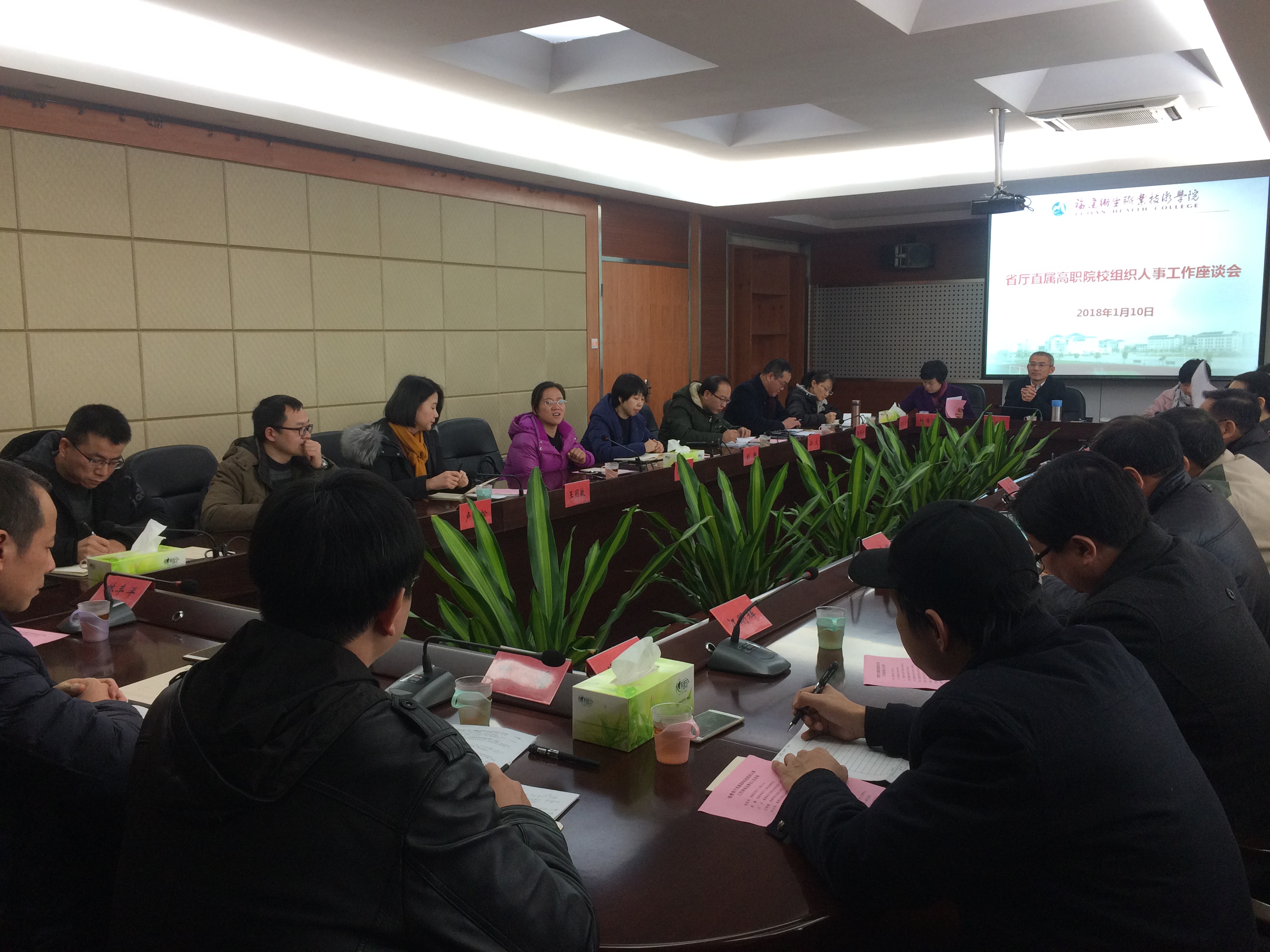1月10日下午,福建省教育廳直屬高職院校組織人事工作座談會在我院行政樓四樓第一會議室舉行。省教育廳人事處處長陳麗英、副調(diào)研員胡靜蒞臨指導(dǎo),福建船政交通職業(yè)學(xué)院、福建信息職業(yè)技術(shù)學(xué)院、福建水利電力職業(yè)技術(shù)學(xué)院、福建林業(yè)職業(yè)技術(shù)學(xué)院、福建農(nóng)業(yè)職業(yè)技術(shù)學(xué)院、福建衛(wèi)生職業(yè)技術(shù)學(xué)院、福建幼兒師范高等??茖W(xué)校、廈門海洋職業(yè)技術(shù)學(xué)院、福建生物工程職業(yè)技術(shù)學(xué)院等9所省教育廳直屬高職院校黨委工作部及人事處負責人參加座談會。我院在家領(lǐng)導(dǎo)曾武祈書記、林建團副書記、鄭翠紅副院長出席會議。