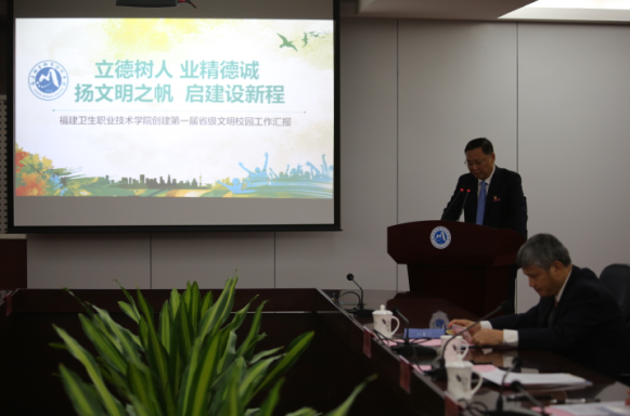 11月19日,以福建師范大學(xué)紀(jì)委書記黃清波為組長的省級文明校園考評組一行7人蒞校,對我院申報第一屆(2015-2017年度)省級文明校園創(chuàng)建工作進(jìn)行實地考評。我院在行政樓第一會議室召開創(chuàng)建工作匯報會,院黨委書記曾武祈、黨委副書記林建團(tuán)、副院長黃開良、紀(jì)委書記李美華,各職能處室負(fù)責(zé)人、二級單位黨政負(fù)責(zé)人、精神文明建設(shè)工作辦公室全體工作人員參加匯報會。