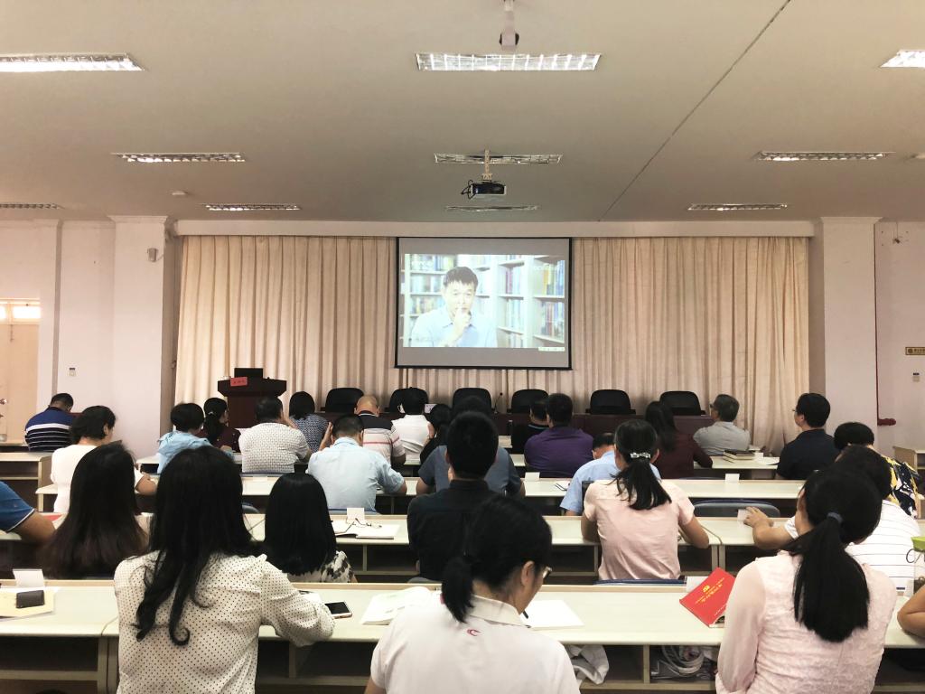 9月25日下午,黨委副書(shū)記李美華主持召開(kāi)“不忘初心、牢記使命”主題教育黨支部書(shū)記輪訓(xùn)班開(kāi)班式暨黨委中心組學(xué)習(xí)(擴(kuò)大)會(huì)議,開(kāi)展“不忘初心、牢記使命”主題教育第四專(zhuān)題“牢記為民使命,強(qiáng)化作風(fēng)建設(shè)”第二場(chǎng)研討。參加會(huì)議的有院領(lǐng)導(dǎo)、各黨總支書(shū)記及黨支部書(shū)記、院直機(jī)關(guān)黨總支全體黨員共100余人。省委教育工委省委教育工委巡回指導(dǎo)二組成員、省文化稽查總隊(duì)副調(diào)研員笪章彪同志蒞臨指導(dǎo)。