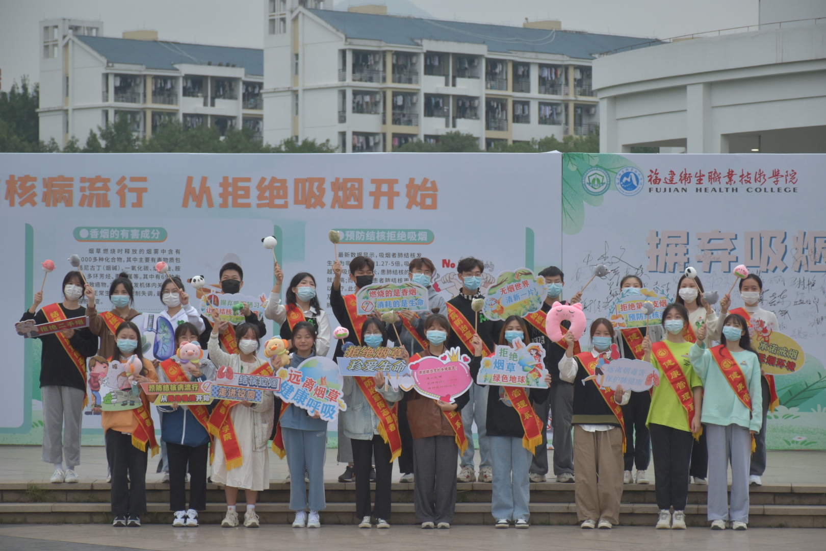 為了預(yù)防結(jié)核病和創(chuàng)建無(wú)煙校園,營(yíng)造綠色、文明、和諧、健康的校園生活環(huán)境,教育引導(dǎo)學(xué)生樹(shù)立預(yù)防結(jié)核病和控?zé)熞庾R(shí),養(yǎng)成健康、文明的生活習(xí)慣,結(jié)核病防治志愿服務(wù)隊(duì)以“預(yù)防結(jié)核流行,從拒絕吸煙開(kāi)始”為主題,在校園開(kāi)展了形式多樣的結(jié)核控?zé)?/span>系列宣傳活動(dòng)。
