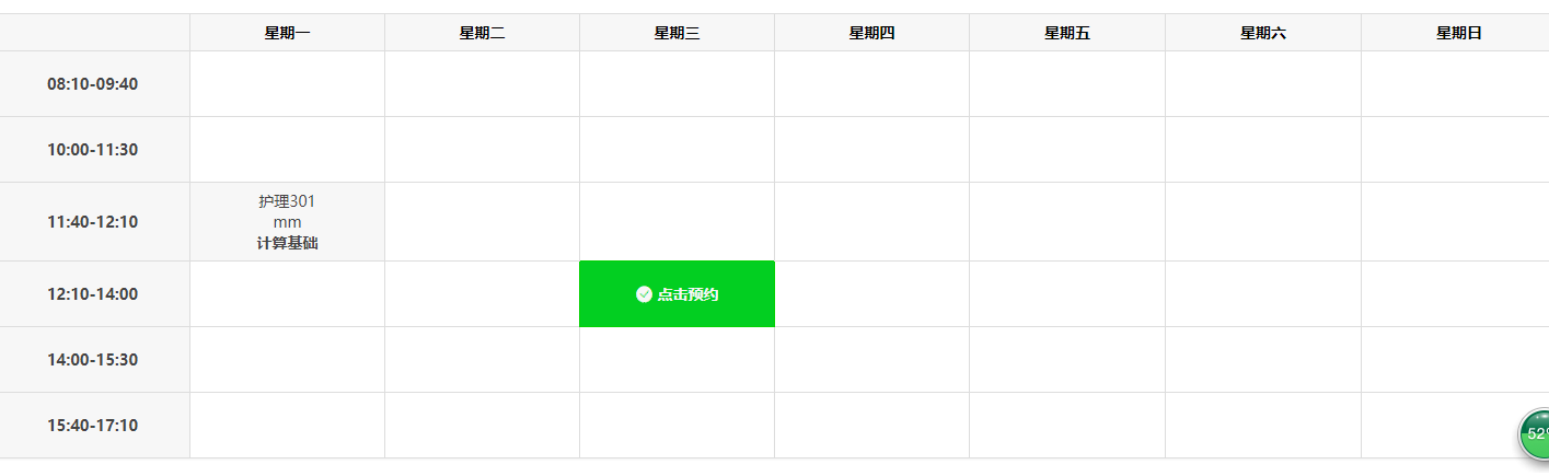 填寫完預約界面后,按確認預約,預約成功后會在預約的時間段上,標記出班級和課程。