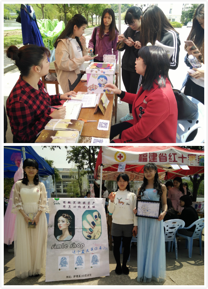 15美容全體同學于2017年4月13日中午12點至下午5點20在明湖餐廳門口處舉辦了一場“四月之花,朵朵綻放”的主題宣傳活動?;顒幽康氖菫榱擞米约旱闹R和技能去回饋大家。在活動前期,他們做了大量的準備工作,制作精美的海報、宣傳單;人員工作分配表;優(yōu)惠細則,甚至利用晚自習的時間去到班宣傳。在活動當天,大家按分配好的工作準備,一切都井然有序?,F(xiàn)場她們共分為咨詢組、項目體驗組、資料記錄組、宣傳組、后勤組,其余的同學則在實訓室做實踐操作。在現(xiàn)場同學都很熱情的上來咨詢和體驗。團委的記者,也對她們進行了創(chuàng)業(yè)采訪。很多老師更是在百忙中抽空來現(xiàn)場體驗項目,并提出了許多寶貴的意見。各系部老師同學們也紛紛上來咨詢皮膚問題,并在實訓室里做了許多項目?;顒优e辦的很成功,也對她們未來的就業(yè)打下了一定的基礎(chǔ)。