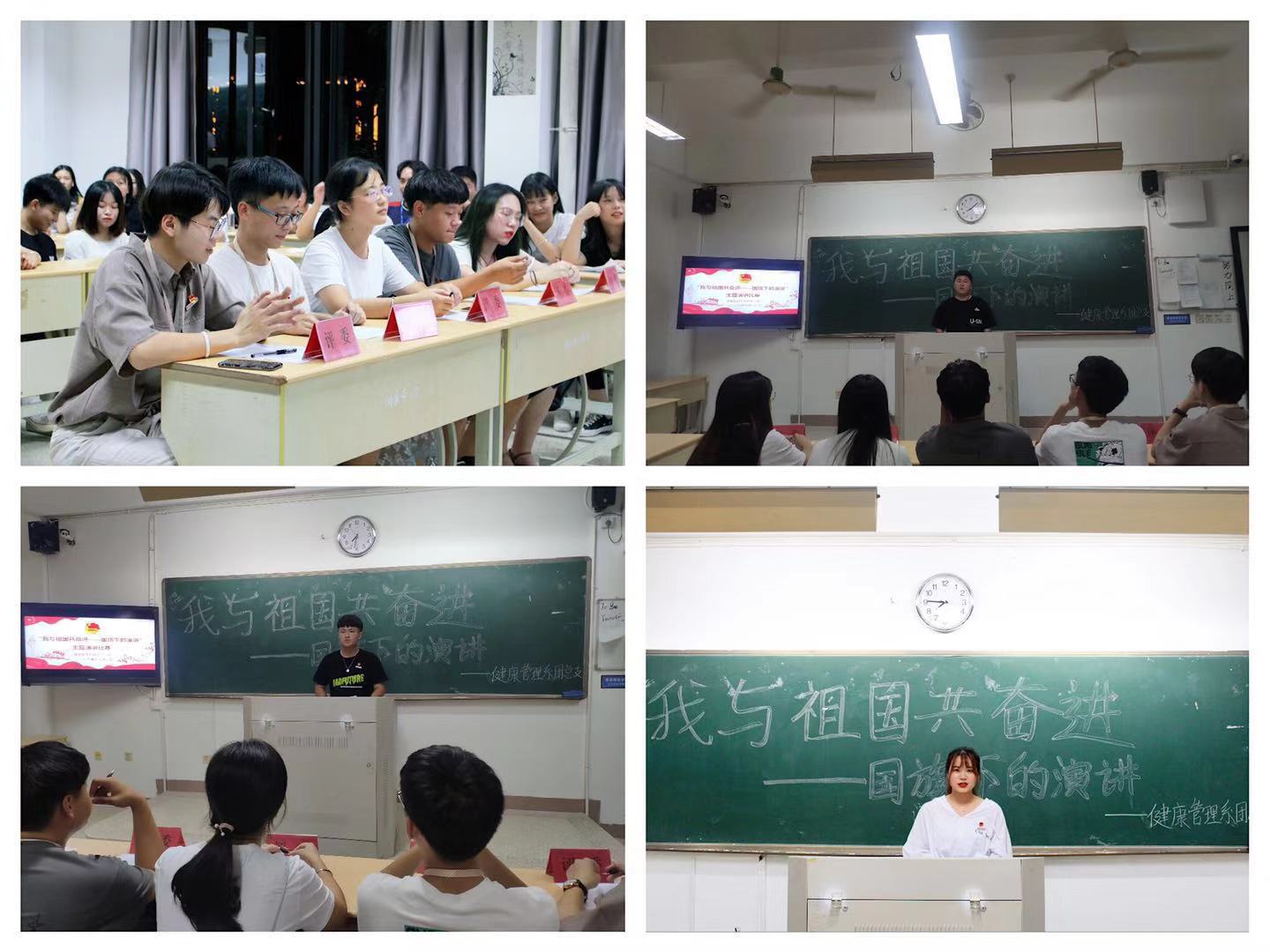 為積極響應(yīng)院團(tuán)委“我與祖國共奮進(jìn)”主題團(tuán)日活動的號召,引導(dǎo)同學(xué)們進(jìn)一步深入學(xué)習(xí)貫徹黨的十九大精神,加強同學(xué)們的愛國教育和提高學(xué)生的綜合素質(zhì)。9月18日晚8點,健康管理系團(tuán)總支以“慶祝中華人民共和國成立70周年”為契機(jī),于教學(xué)樓301開展以“我與祖國共奮進(jìn)——國旗下的演講”為主題的慶祝中華人民共和國成立70周年演講比賽活動。