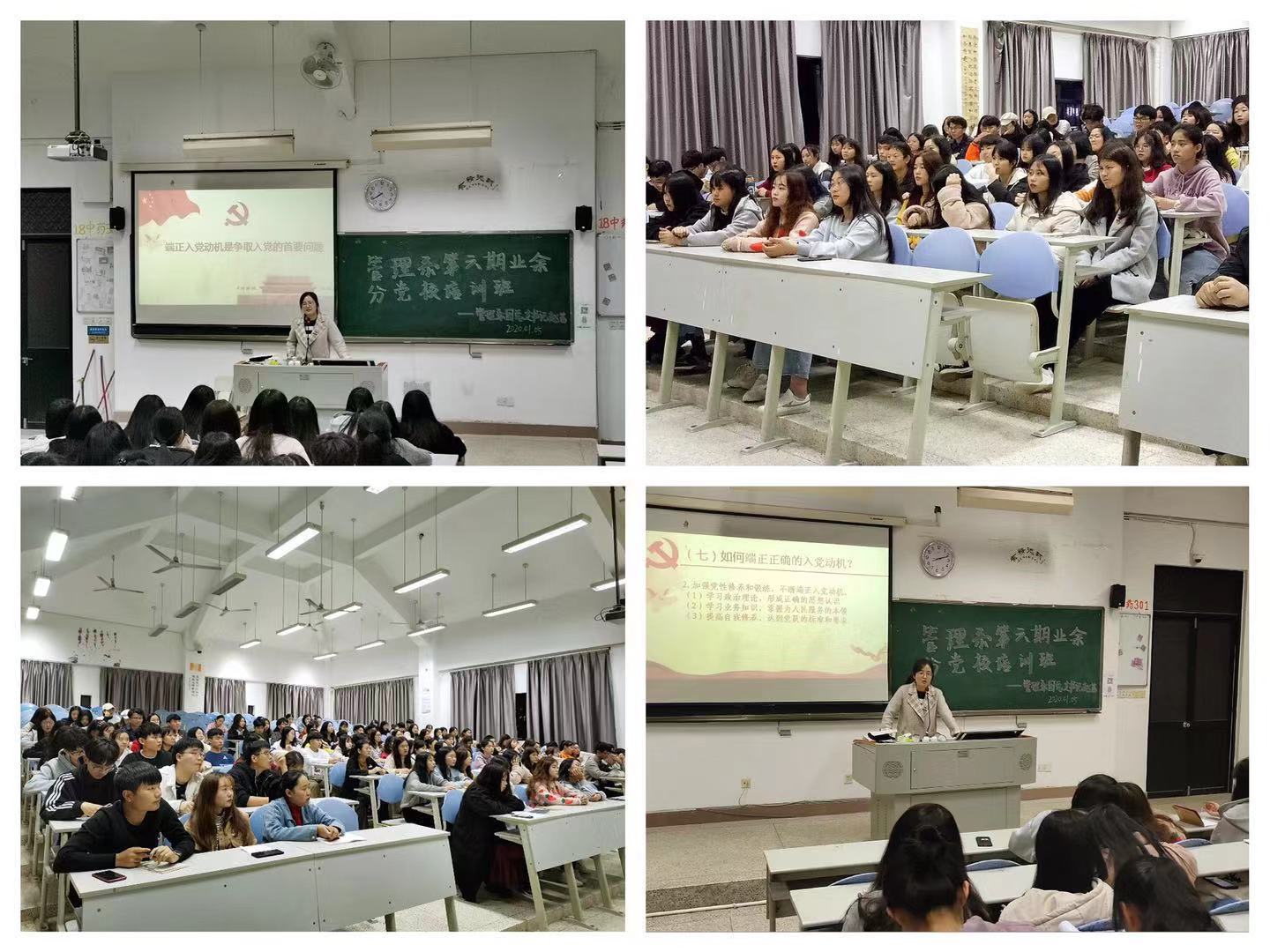 講座開始前,管理系團總支書記趙茜老師以“端正入黨動機是爭取入黨的首要問題”為切入點,從端正入黨動機、積極創(chuàng)造條件、爭取早日成為合格黨員等方面論述,要求入黨積極分子嚴(yán)格遵循黨的章程,履行黨的宗旨,身體力行,接受黨組織的考驗。并側(cè)面分析了不正確的入黨動機表現(xiàn)以及因素分析,聯(lián)系大學(xué)生的學(xué)習(xí)、生活、思想實際等,對學(xué)員們的思維方式、價值取向、行為選擇做出正確的引導(dǎo),還充分體現(xiàn)了新時代黨員的先進(jìn)性、純潔性、革命性、團結(jié)性。讓授課學(xué)員們更加端正正確的入黨動機,堅信入黨信心,增強“四個意識”、堅定“四個自信”、做到“兩個維護(hù)”,在社會實踐中發(fā)揮模范帶頭作用。