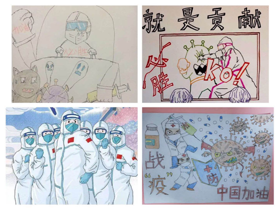 我們之所以贊頌勇氣,是因?yàn)槿祟?lèi)總是在明知風(fēng)險(xiǎn)的時(shí)候,仍然選擇我們?cè)撟龅氖滤麄兙拖裥切且粯釉诤谝估镩W閃發(fā)光。明明有這么多的陰影,卻透過(guò)這些看到了更多樸實(shí)善良又可愛(ài)的人們被這片土地上的拳拳之心和守望相助而感動(dòng)。為之心碎,也為之更加熱愛(ài)這個(gè)世界更珍惜自己,更要朝著光走下去。本次抗疫情文創(chuàng)作品,在17.18.19級(jí)學(xué)生中取得了很大的響應(yīng),各學(xué)子通過(guò)不同形式為武漢加油,為中國(guó)加油!加油,我們一定可以戰(zhàn)勝疫情!
