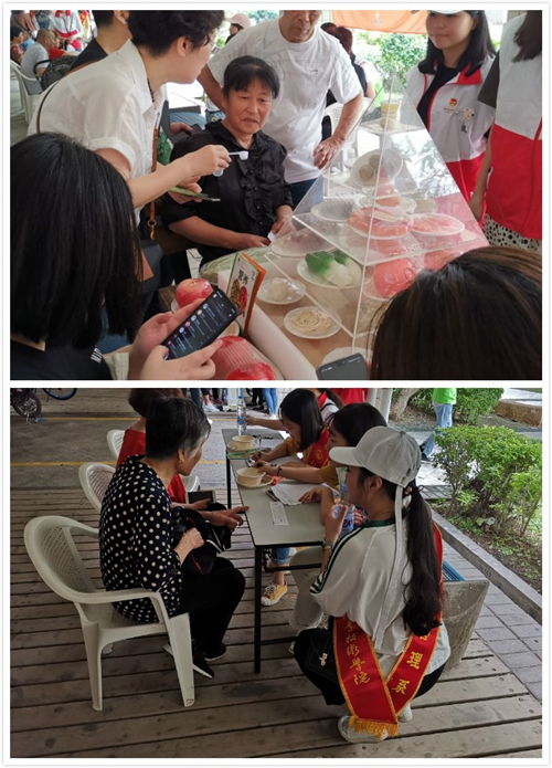 為了強(qiáng)化對社區(qū)居民日常膳食的指導(dǎo),此次活動還進(jìn)行了有獎互動環(huán)節(jié)及營養(yǎng)調(diào)查環(huán)節(jié)。有獎環(huán)節(jié),參與者隨機(jī)抽取問題并作答即可獲得精美紀(jì)念品。營養(yǎng)調(diào)查環(huán)節(jié),老師與志愿者們通過與社區(qū)居民交流,了解其日常膳食情況,發(fā)現(xiàn)問題,并針對實(shí)際情況,給予正確的膳食指導(dǎo)。