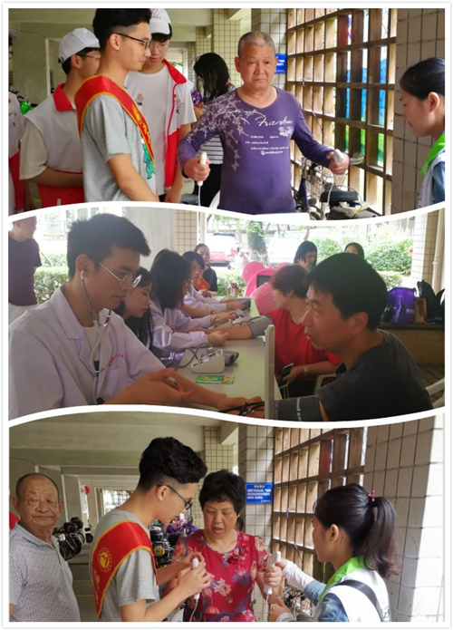 義診環(huán)節(jié),志愿者們免費(fèi)為社區(qū)居民測量血壓,指導(dǎo)使用人體成分分析儀并提供營養(yǎng)咨詢服務(wù),認(rèn)真解答社區(qū)居民的問題。
