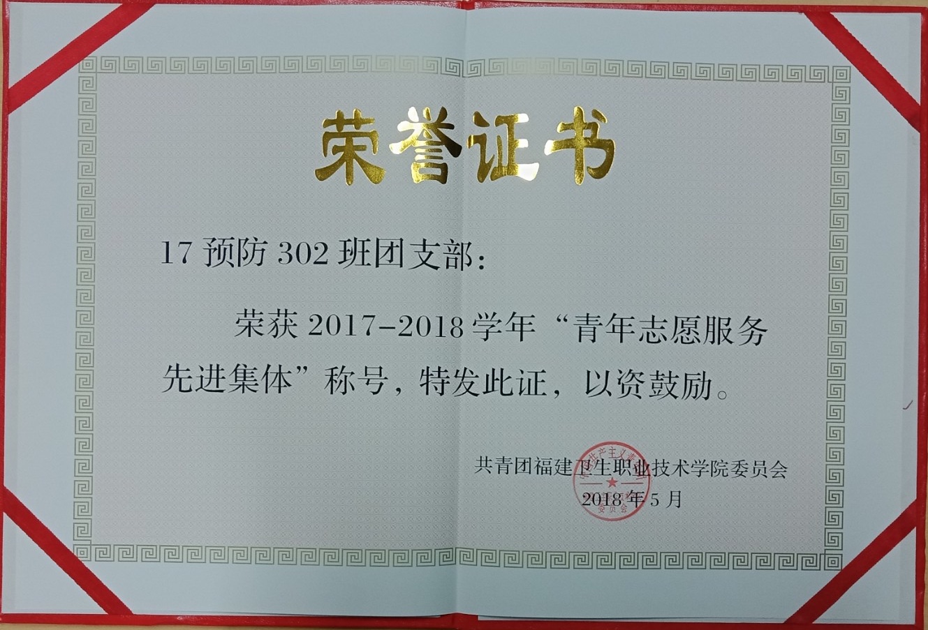 17預(yù)防302班團(tuán)支部獲評“青年志愿服務(wù)先進(jìn)集體”