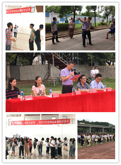 金秋十月,丹桂飄香,2017年10月13日下午,管理系2017年“個性促成長,團結共奮進”素質拓展活動的啟動儀式在田徑場舉行。院黨委林建團副書記出席啟動儀式并致辭,院團委黃曦副書記、學工處林燕副處長、管理系艾松軍副書記、管理系辦公室陳盛蘭主任及管理系輔導員老師出席本次活動。
