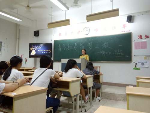 管理系團(tuán)總支組織委員陳鉆強(qiáng)同學(xué)到16美容301班進(jìn)行宣講。