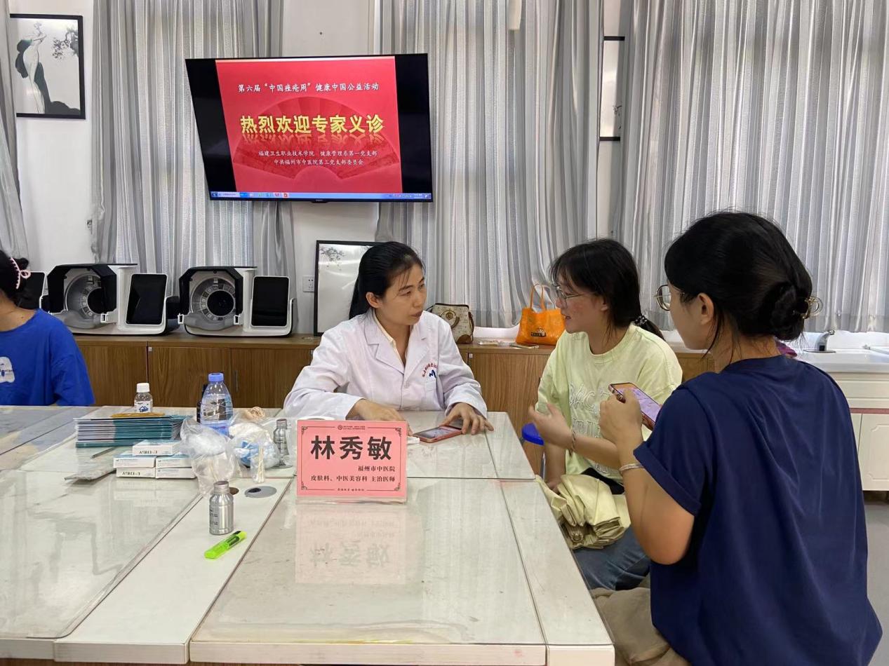 為貫徹落實“健康中國”戰(zhàn)略,9月28日上午,健康管理系第一黨支部與福州市中醫(yī)院第三黨支部在智慧教室共同舉辦了第六屆“中國痤瘡周”健康中國公益活動。此次活動由科普講座、專家義診兩部分組成。講座由福州市中醫(yī)院皮膚科張婧博士主講,全校師生代表參加。該講座指導公眾科學認識痤瘡,重視痤瘡的治療和護理,預防痤瘡的發(fā)生,提高當代大學生對身心健康的關注度。講座結束后,由福州市中醫(yī)院張婧、林秀敏醫(yī)生為有痤瘡困擾的師生展開中醫(yī)義診活動,有大批師生前往咨詢。本次黨日活動通過師生們感興趣的“痤瘡”話題,將中醫(yī)傳統(tǒng)文化的優(yōu)勢與特色通過講座的形式深深地播種到師生們的心里。讓中醫(yī)的診療手段、防治方法能夠?qū)嶋H應用于點點滴滴的生活中,做到入心入腦入生活。