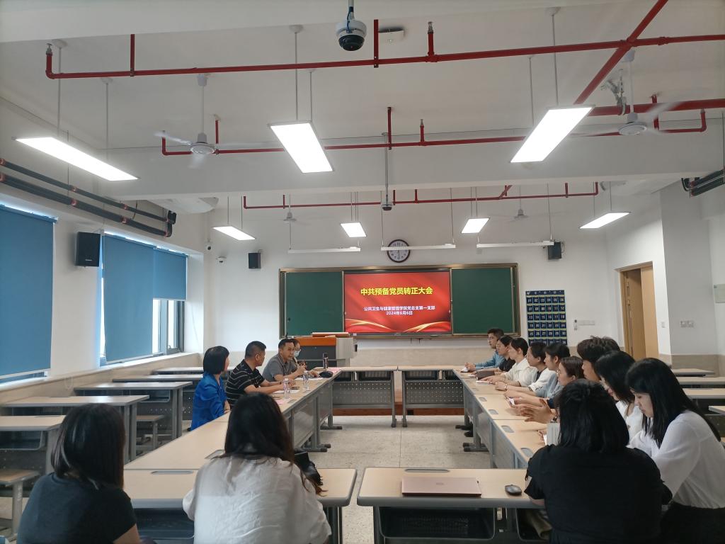6月6日,公共衛(wèi)生與健康管理學(xué)院黨總支第一支部舉行預(yù)備黨員轉(zhuǎn)正大會,大會討論并審議預(yù)備黨員鄭萍萍、謝隆騰、林雅娜等3位同志轉(zhuǎn)為正式黨員問題。