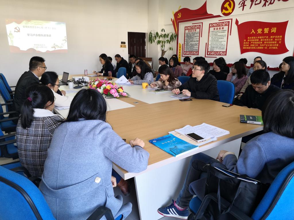 12月12日下午,管理系黨總支召開中心組學(xué)習(xí)(擴(kuò)大)會(huì)議,學(xué)習(xí)“時(shí)代楷?!北R永根先進(jìn)事跡,總結(jié)學(xué)習(xí)《中國共產(chǎn)黨宣傳工作條例》。會(huì)議由管理系黨總支書記艾松軍同志主持。