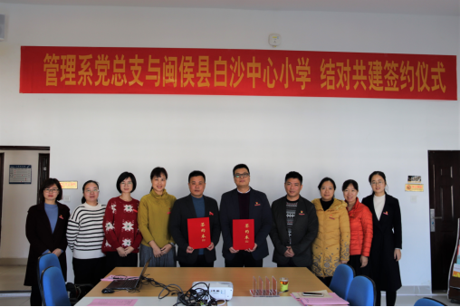 此次管理系黨總支與白沙中心小學(xué)結(jié)對共建成功簽約,進(jìn)一步推動樂“文明校園+鄉(xiāng)村少年宮”共建項(xiàng)目,形成結(jié)對共建工作的長效機(jī)制,讓共建成果服務(wù)鄉(xiāng)村振興,提升農(nóng)村未成年人思想道德建設(shè)工作水平。今后,雙方將堅持黨建引領(lǐng)、互相支持、共同進(jìn)步、共謀共建的原則,以“激發(fā)黨建新活力,實(shí)現(xiàn)雙贏齊發(fā)展”為目標(biāo),實(shí)現(xiàn)資源共享、優(yōu)勢互補(bǔ)、全面發(fā)展、共同提高,以共建促發(fā)展,構(gòu)建新的有機(jī)互聯(lián)的組織系統(tǒng),不斷提高共建工作整體效應(yīng)。