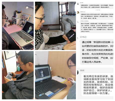 將近上午十點,全體黨員就放下手頭工作,認真準備,準時進入這一堂特別課程的學習。主講張文宏從人類傳染病的歷史說起,介紹了新冠肺炎的發(fā)生,以及病例特點與臨床診治效果等內(nèi)容,語言幽默,讓大家在不知不覺間認識了新冠肺炎的重要特征;主講吳凡從流行病的角度介紹了新冠肺炎在全國和上海的流行情況和趨勢,提出了相應的防控策略,并特別介紹了校園內(nèi)的防控措施,給我們做好校園內(nèi)的疫情防控提供了有效的參考。她對于如何打噴嚏的形象講解,讓大家明白,緊急時刻做好防護,才能有效保護自己,也保護好身邊的人。