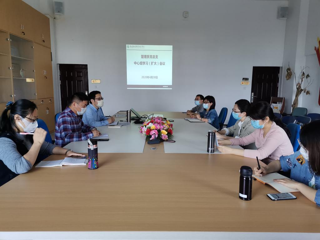 4月30日上午,管理系黨總支召開(kāi)中心組學(xué)習(xí)(擴(kuò)大)會(huì)議,學(xué)習(xí)《黨委(黨組)落實(shí)全面從嚴(yán)治黨主體責(zé)任規(guī)定》《關(guān)于新冠肺炎疫情期間暫?;謴?fù)大型體育活動(dòng)和聚集性活動(dòng)的通知》《關(guān)于繼續(xù)加強(qiáng)科學(xué)精準(zhǔn)防控積極做好復(fù)工復(fù)產(chǎn)復(fù)學(xué)人員健康管理工作的通知》《關(guān)于印發(fā)<教育系統(tǒng)應(yīng)對(duì)學(xué)校突發(fā)新冠肺炎疫情處置預(yù)案>的通知》《關(guān)于做好重點(diǎn)人群管理服務(wù)等有關(guān)工作的通知》。會(huì)議由管理系黨總支書(shū)記黃曦同志主持。