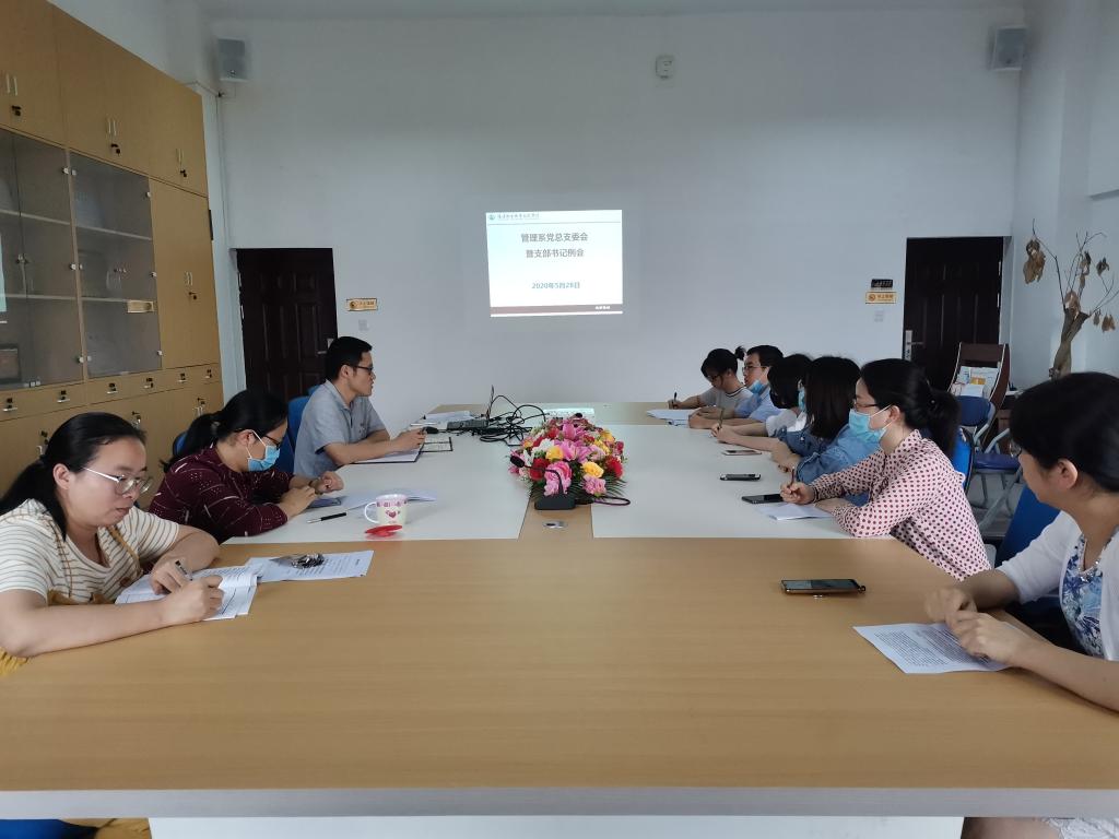 為進一步推動支部黨建工作順利開展,管理系黨總支于5月28日下午召開黨支部書記例會,會議由系黨總支黃曦書記主持。管理系黨總支委員、各支部書記、黨務干部參加會議。