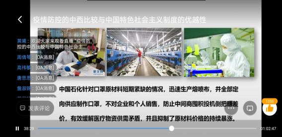 黃曦書記以中美兩國政府在疫情防控中所采取的行動和最終結(jié)果進(jìn)行比較,指出黨中央堅持全國一盤棋、集中統(tǒng)一領(lǐng)導(dǎo)疫情防控的制度優(yōu)勢,讓黨旗在疫情防控第一線高高飄揚,彰顯共產(chǎn)黨領(lǐng)導(dǎo)的中國特色社會主義制度的政治優(yōu)勢。從中西方人民生存現(xiàn)狀對比,體現(xiàn)黨中央始終把人民群眾生命安全和健康放在第一位,應(yīng)收盡收,應(yīng)治盡治,應(yīng)檢盡檢、應(yīng)隔盡隔,彰顯中國特色社會主義制度以人民為中心的價值優(yōu)勢。