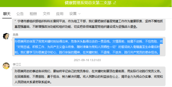 大家紛紛表示,這次活動(dòng)讓自己深受感動(dòng),深受教育,孫麗美同志始終把對(duì)黨忠誠(chéng)、人民至上融入到精神血脈中,用生命詮釋了共產(chǎn)黨人甘于犧牲奉獻(xiàn)的崇高品格。今后要以孫麗美同志為榜樣,把學(xué)習(xí)成效轉(zhuǎn)化為實(shí)際行動(dòng)。