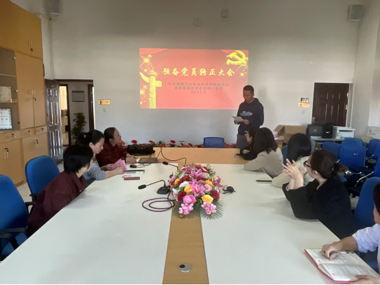 2021年8月27日,健康管理系黨總支第一支部舉行預(yù)備黨員轉(zhuǎn)正大會,大會討論并審議預(yù)備黨員徐偉東同志(教師)轉(zhuǎn)為正式黨員問題,支部全體黨員參加會議。