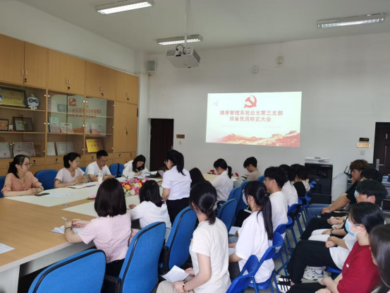 6月1日,健康管理系黨總支第三支部于圖書館五樓會議室召開預(yù)備黨員轉(zhuǎn)正大會,會議就盧德利等10名志轉(zhuǎn)正問題展開了充分討論,黨支部書記王開曄同志主持會議。