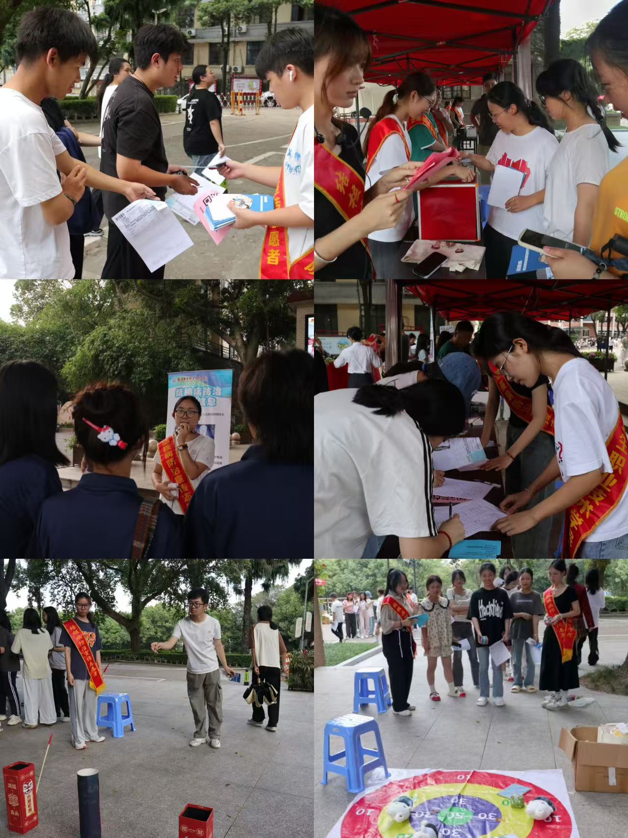 趣味問答可以很好地增加活動的趣味性以及學(xué)生的參與度,同時(shí)提高同學(xué)對結(jié)核病相關(guān)知識的掌握程度。將肺結(jié)核的傳播途徑、肺結(jié)核的診斷、肺結(jié)核的預(yù)防措施等知識編制成題目,還可通過轉(zhuǎn)盤、“丟沙包”游戲、問答方式參與,提高了參與熱情與積極性,并給他們發(fā)放紀(jì)念品獎勵和鼓勵。