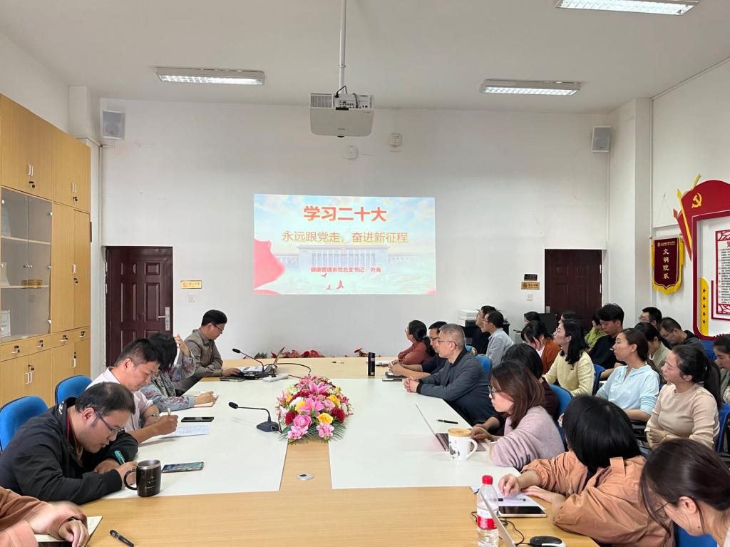 10月20日,健康管理系黨總專題學(xué)習(xí)黨的二十大報(bào)告在系部會(huì)議舉行,本次學(xué)習(xí)主題為“學(xué)習(xí)二十大,永遠(yuǎn)跟黨走,奮進(jìn)新征程”。健康管理黨總支書記葉海主講,全體教職工參會(huì)。