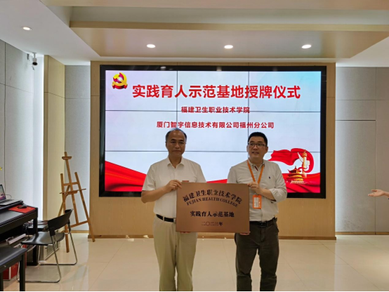 福建衛(wèi)生職業(yè)技術(shù)學(xué)院與廈門智宇信息科技有限公司共建實(shí)踐育人示范基地授牌儀式現(xiàn)場(chǎng)