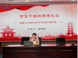 陳梅欽老師在提升學(xué)生干部素質(zhì)和能力上,提出“1+2+3+4+5”新時代學(xué)生干部模式,希望學(xué)生干部時刻保持為同學(xué)全心全意服務(wù)的初心,以身作則,樹立良好榜樣。另外,陳梅欽老師針對學(xué)生干部常用禮儀,強(qiáng)調(diào)學(xué)生干部應(yīng)加強(qiáng)言語表達(dá)、規(guī)范待人接物禮儀、會議禮儀等,希望在未來成長道路上,展現(xiàn)良好的形象和素養(yǎng),樹立正確的價值觀和行為準(zhǔn)則。