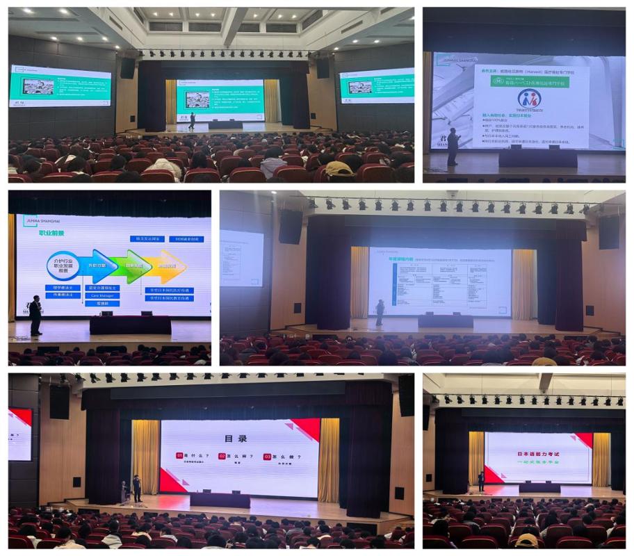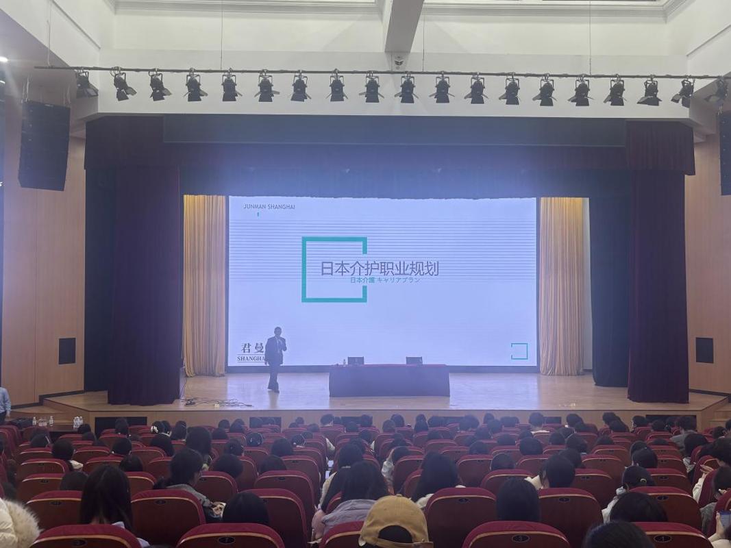 宣講中,主講人結(jié)合國(guó)內(nèi)就業(yè)數(shù)據(jù),剖析行業(yè)趨勢(shì)與職業(yè)痛點(diǎn),讓學(xué)生清晰認(rèn)知當(dāng)前就業(yè)環(huán)境。隨后,重點(diǎn)介紹了與上海君曼合作的赴日介護(hù)福祉士留學(xué)+就業(yè)項(xiàng)目,該項(xiàng)目依托優(yōu)質(zhì)教育資源,采用“國(guó)內(nèi)日語培訓(xùn)+赴日兩年專業(yè)學(xué)習(xí) + 畢業(yè)后定向就業(yè)”的一體化模式,學(xué)生通過相關(guān)考核后,可獲得赴日介護(hù)福祉士資格證書。