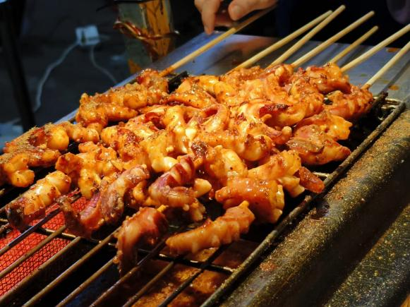 在這里還有美味的燒烤等著你。極嫩的肉質(zhì)被烤的金黃酥脆,在燈光下散發(fā)著誘人的光芒,視覺和味覺的雙重誘惑讓人難以拒絕。