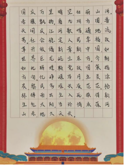 本次書寫比賽分為硬筆組和軟筆組。選手們的書寫或精雕細(xì)琢,或揮毫潑墨,或蒼勁有力,或柔美飄逸。但不論是何種風(fēng)格的書法作品,字里行間都流露出選手們的拳拳愛國(guó)心和對(duì)祖國(guó)繁榮昌盛的美好祝愿。