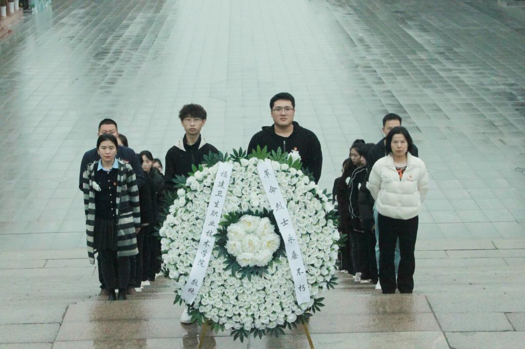 在莊嚴(yán)肅穆的烈士紀(jì)念碑前,師生們列隊(duì)肅立,深切緬懷革命先烈的豐功偉績(jī),向革命先烈集體默哀,寄托對(duì)革命先烈的無限哀思。