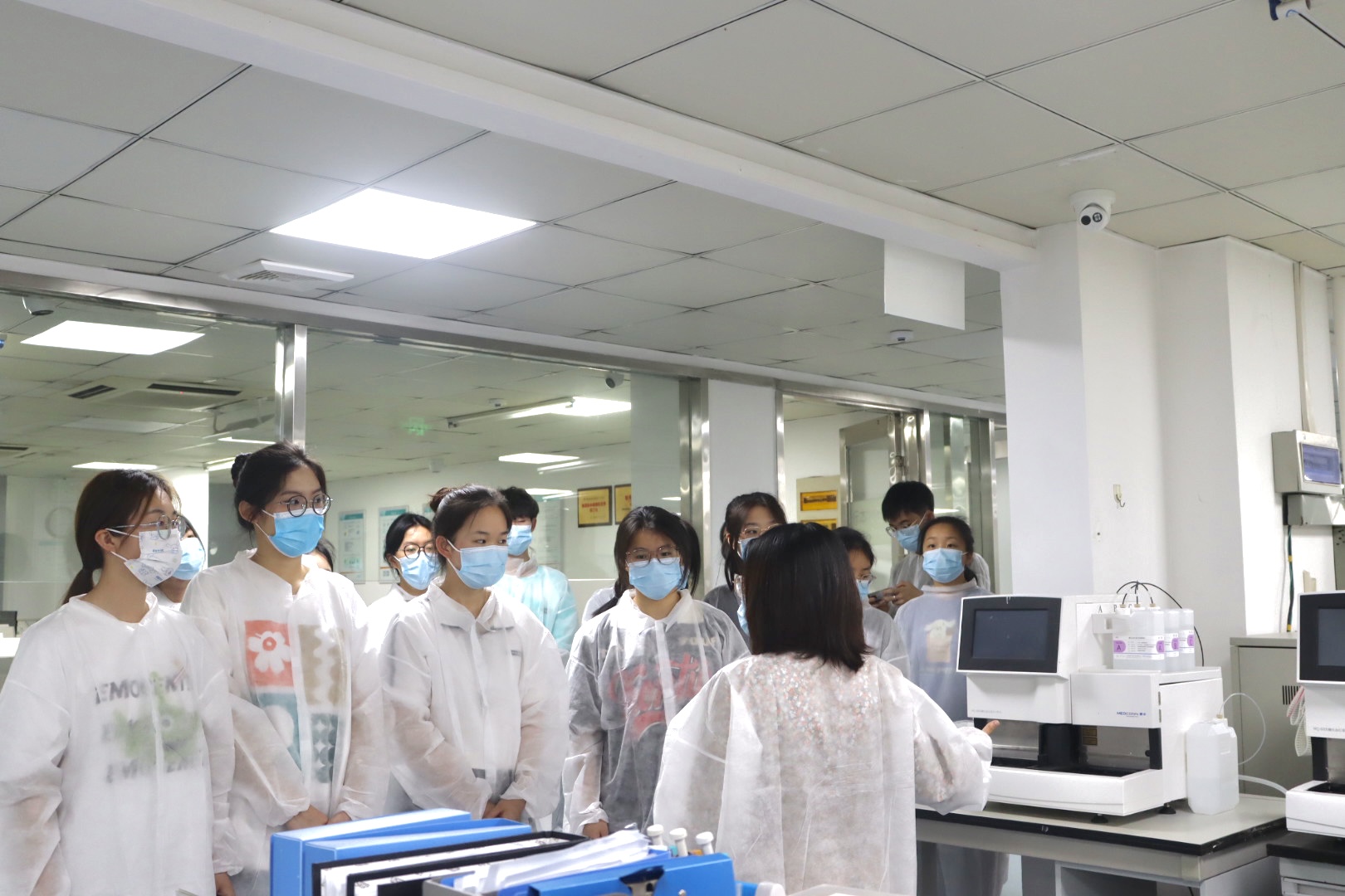 師生分組參觀了包括遺傳室、理化室、PCR等在內(nèi)的7個組別實(shí)驗(yàn)室,各組負(fù)責(zé)人耐心地講解了檢測項(xiàng)目及注意事項(xiàng)。