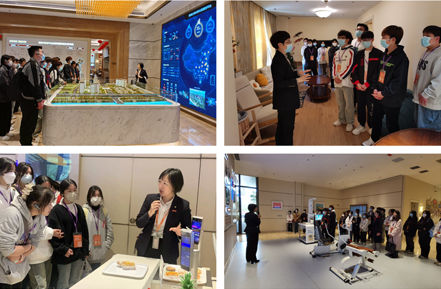 在泰康之家人力資源部的熱情接待下,我校師生參觀了泰康養(yǎng)老機(jī)構(gòu)體驗(yàn)館,深入了解泰康之家的養(yǎng)老觀念、醫(yī)養(yǎng)融合、科技養(yǎng)老以及新養(yǎng)老生活的七大需求滿足方式等。