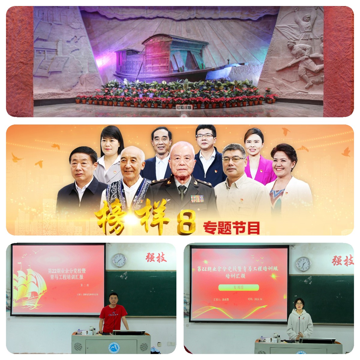 培訓(xùn)班開展系列紅色主題活動(dòng),引導(dǎo)學(xué)員進(jìn)一步學(xué)黨史學(xué)榜樣,深化學(xué)習(xí)感悟。組織學(xué)員云上參觀“南湖革命紀(jì)念館”數(shù)字展館,了解革命領(lǐng)袖和先烈的事跡,接受“紅船精神”熏陶,感悟偉大建黨精神。觀看《榜樣8》專題節(jié)目,了解新時(shí)代優(yōu)秀共產(chǎn)黨員、優(yōu)秀基層黨組織的事跡,感悟榜樣力量。撰寫個(gè)人培訓(xùn)心得并進(jìn)行互評(píng),以小組為單位進(jìn)行學(xué)習(xí)成果匯報(bào),加強(qiáng)學(xué)習(xí)交流的同時(shí),也充分展示學(xué)員們感黨恩、跟黨走的決心。