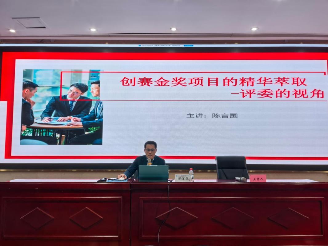 講座中,陳言國(guó)系統(tǒng)闡釋了大學(xué)生創(chuàng)新創(chuàng)業(yè)大賽的賽事定位、社會(huì)影響力及其備受重視的內(nèi)在動(dòng)因,引導(dǎo)學(xué)生從更高維度認(rèn)識(shí)參賽價(jià)值。