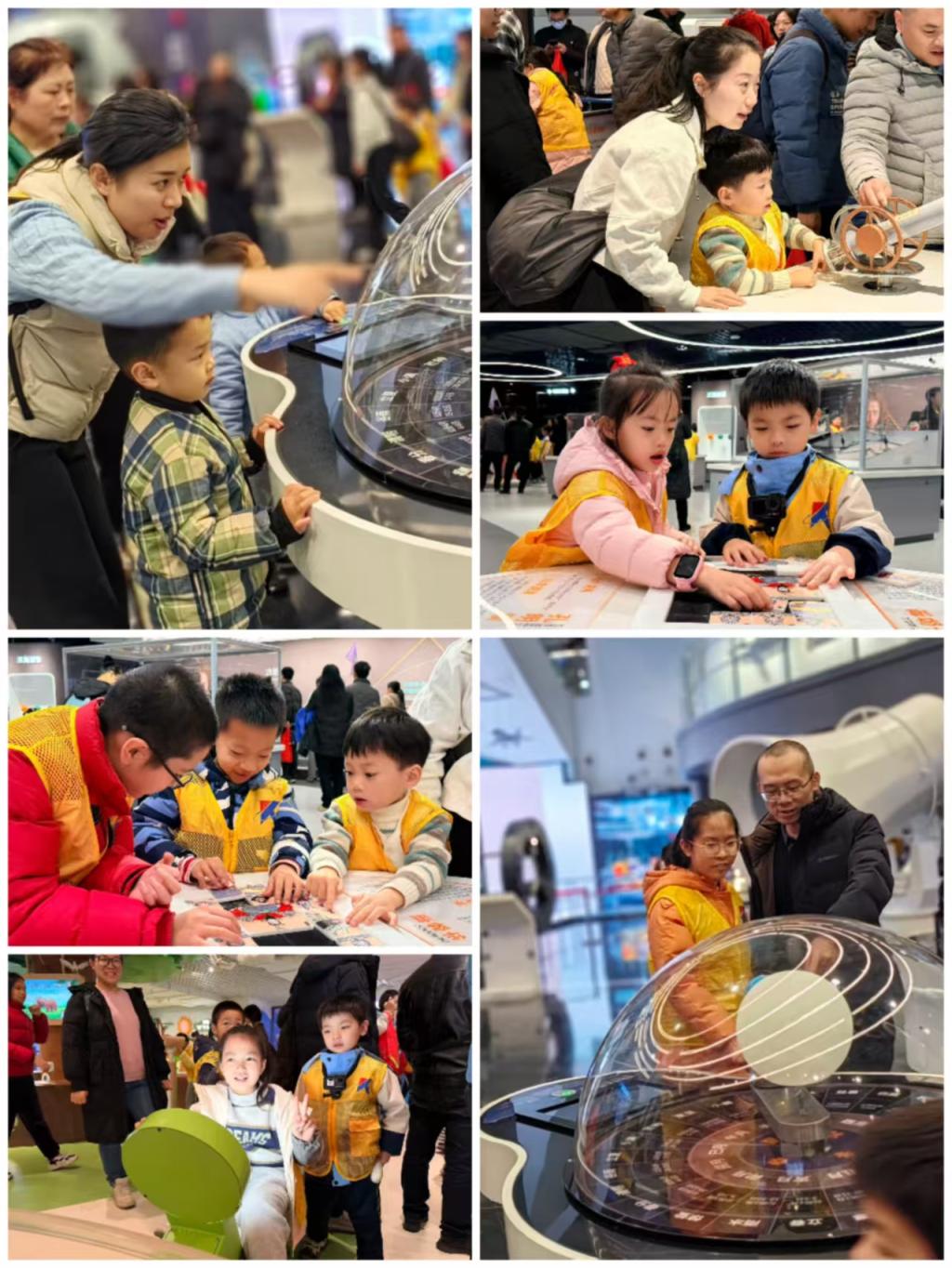 活動現(xiàn)場,在科技館講解老師的帶領(lǐng)下,展廳成了孩子們眼中最生動的課堂:海洋探索展廳,“奮斗者”號模型吸引孩子們踮腳圍觀,驚嘆于深海奧秘;航天航空展廳中,教職工與孩子共同仰望我國航天航空的輝煌成就,共同感受科技強國的自豪;兒童科技樂園里,互動裝置前歡聲此起彼伏,孩子們在動手操作中體驗基礎(chǔ)科學(xué)的樂趣。教職工們卸下平日工作的忙碌,全身心陪伴孩子,或俯身講解,或攜手體驗,現(xiàn)場洋溢著輕松愉悅的親子氛圍。