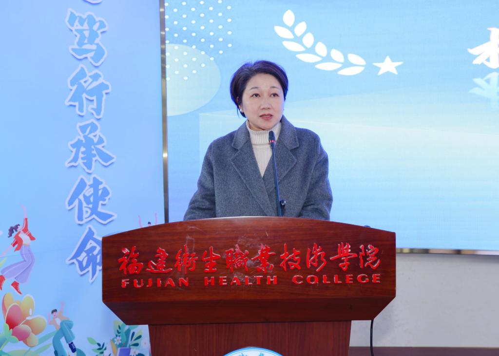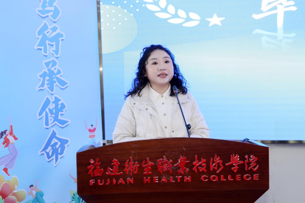 教師代表陳慧蘭以“終身學習、職業(yè)溫度、赤子之心”三句寄語贈別畢業(yè)生,囑托大家保持專業(yè)精進,永懷人文關懷,在守護人民健康的道路上篤定前行。