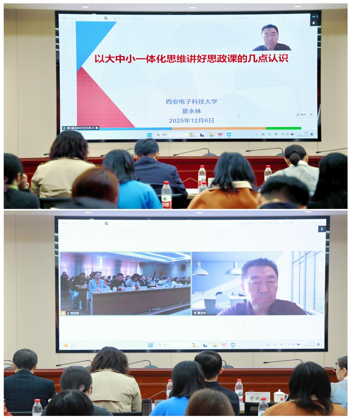 全國網(wǎng)絡(luò)教學(xué)名師、西安電子科技大學(xué)夏永林教授作題為《以大中小一體化思維講好思政課的幾點(diǎn)認(rèn)識》的主旨報告。報告從“一體化的由來、關(guān)鍵與實踐路徑”三個維度展開,系統(tǒng)闡釋了大中小學(xué)思政課一體化是遵循認(rèn)知規(guī)律、教育基本規(guī)律和思想政治教育規(guī)律的必然要求。參會教師受益匪淺,紛紛表示,將把一體化育人思維融入教學(xué)設(shè)計,立足學(xué)段特點(diǎn),深挖文化資源,讓思政課真正走進(jìn)學(xué)生心靈。