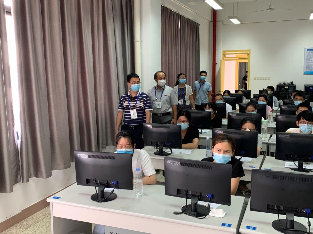 本次考試采取人機對話考試形式,共計考生606人。福建省衛(wèi)健科教處副處長江榮輝一行四人在我院院長許能鋒、副院長黃銘珊的陪同下巡視考試現(xiàn)場組織工作,先后實地察看了入場檢測點、臨時隔離觀察點、主考室、考場以及備用隔離考場等硬件設施配置,認真了解監(jiān)考情況,對本次考務組織工作給予充分肯定。