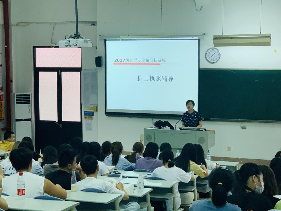 學(xué)院領(lǐng)導(dǎo)高度重視精準(zhǔn)扶貧班學(xué)生的護(hù)考培訓(xùn),到班級與學(xué)生親切交談,為他們加油助威。學(xué)院黨委書記曾武祈用四個熱愛“熱愛生活、熱愛學(xué)習(xí)、熱愛工作、熱愛家國”激勵學(xué)生好好學(xué)習(xí)。