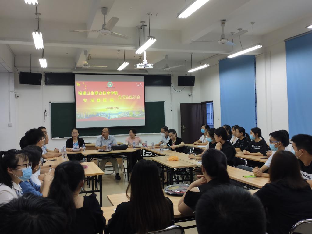 我院一行人還參加了實(shí)習(xí)生座談會(huì)。座談會(huì)上,學(xué)生們分享交流實(shí)習(xí)2個(gè)月以來(lái)的認(rèn)識(shí)和收獲,并且提出問(wèn)題與建議,對(duì)進(jìn)一步提高學(xué)校和醫(yī)院教學(xué)質(zhì)量提出寶貴意見(jiàn)。許能鋒傳達(dá)了學(xué)院領(lǐng)導(dǎo)對(duì)同學(xué)們的關(guān)心和期望,要求在實(shí)習(xí)期間抓住機(jī)會(huì),認(rèn)真向醫(yī)院的帶教學(xué)習(xí),踏實(shí)工作,為將來(lái)走上工作崗位打好基礎(chǔ)。