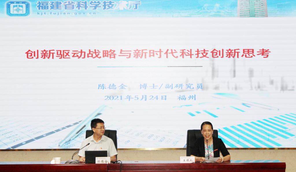 圍繞本次科技活動周主題“百年回望:中國共產(chǎn)黨領(lǐng)導(dǎo)科技發(fā)展”,特邀福建省科技發(fā)展研究中心副主任陳德金博士做題為《創(chuàng)新驅(qū)動戰(zhàn)略與新時代科技創(chuàng)新思考》的主題報告。陳博士詳細介紹了近年來在黨的領(lǐng)導(dǎo)下我國所取得的科技創(chuàng)新成效,并從國家創(chuàng)新驅(qū)動戰(zhàn)略實施、國家創(chuàng)新體系構(gòu)建、中美科技創(chuàng)新競爭和未來科技創(chuàng)新發(fā)展的思考等四個方面闡釋了科技創(chuàng)新的重要性,歸納總結(jié)我國在科技創(chuàng)新方面的各項政策及舉措,展望未來科技創(chuàng)新發(fā)展的趨勢。