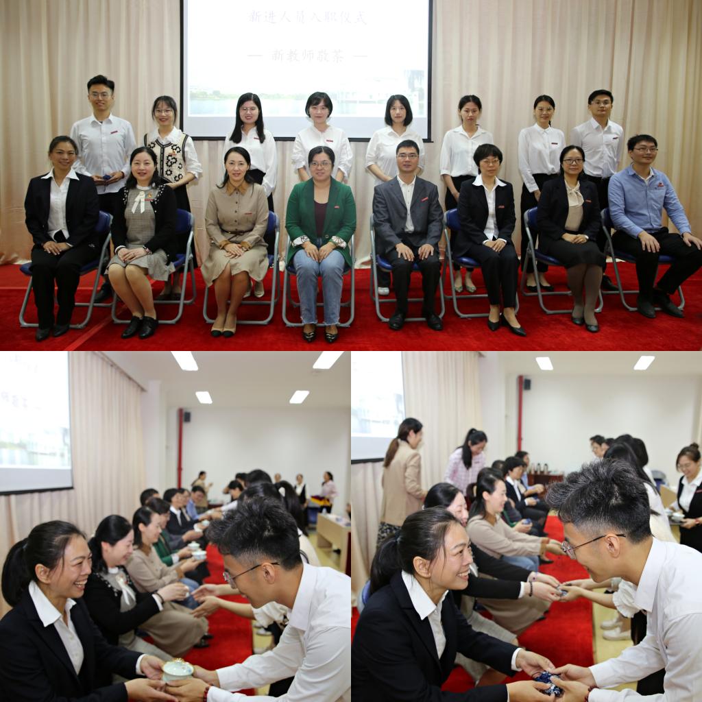 在“青藍(lán)傳承”環(huán)節(jié),校領(lǐng)導(dǎo)為新教師導(dǎo)師發(fā)放聘書,隨后導(dǎo)師們上臺(tái)接受新教師的拜師敬茶、回贈(zèng)錦囊,一拜一回中承載著導(dǎo)師和新教師們彼此間的約定,儀式現(xiàn)場師徒互動(dòng)、掌聲不斷。