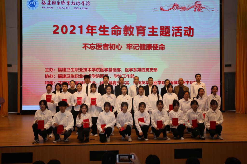 11月18日,我校舉辦以“不忘醫(yī)者初心,牢記健康使命”為主題的2021級(jí)新生生命教育系列活動(dòng)。校長(zhǎng)許能鋒,團(tuán)委、學(xué)生工作部、醫(yī)學(xué)系負(fù)責(zé)人,醫(yī)學(xué)基礎(chǔ)部全體教師、輔導(dǎo)員代表、各系2021級(jí)學(xué)生代表、第二課堂學(xué)生參加活動(dòng),閩侯縣團(tuán)委、閩侯縣青少年宮、福州英華職業(yè)學(xué)院、閩侯職業(yè)中專學(xué)校師生代表受邀出席,共有397人參加此次活動(dòng)。